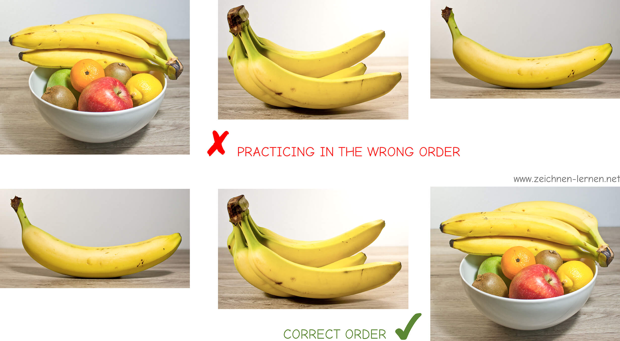 Trying to draw too many different subjects at once can also be counterproductive. So instead of a whole fruit bowl, start by drawing a single piece of fruit.