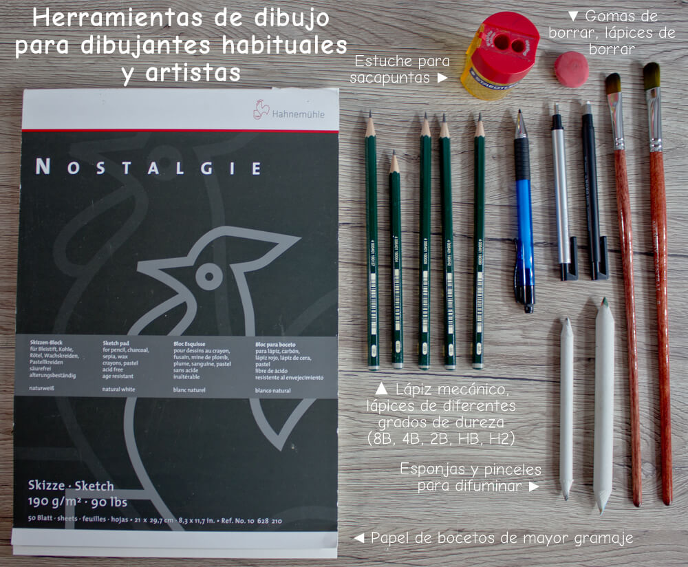 No se necesitan en absoluto materiales artísticos caros y de alta calidad para dibujar buenos dibujos. Incluso los productos de las tiendas de descuento o las marcas económicas garantizan resultados satisfactorios. No es el material lo que hace que un dibujo sea bueno, sino la habilidad del artista. No obstante, no hay que dejarse seducir por ofertas demasiado baratas de Internet. ¡Los materiales de baja calidad pueden arruinar rápidamente el placer de dibujar y pintar! Aquí encontrarás una lista de marcas consolidadas (en alemán).