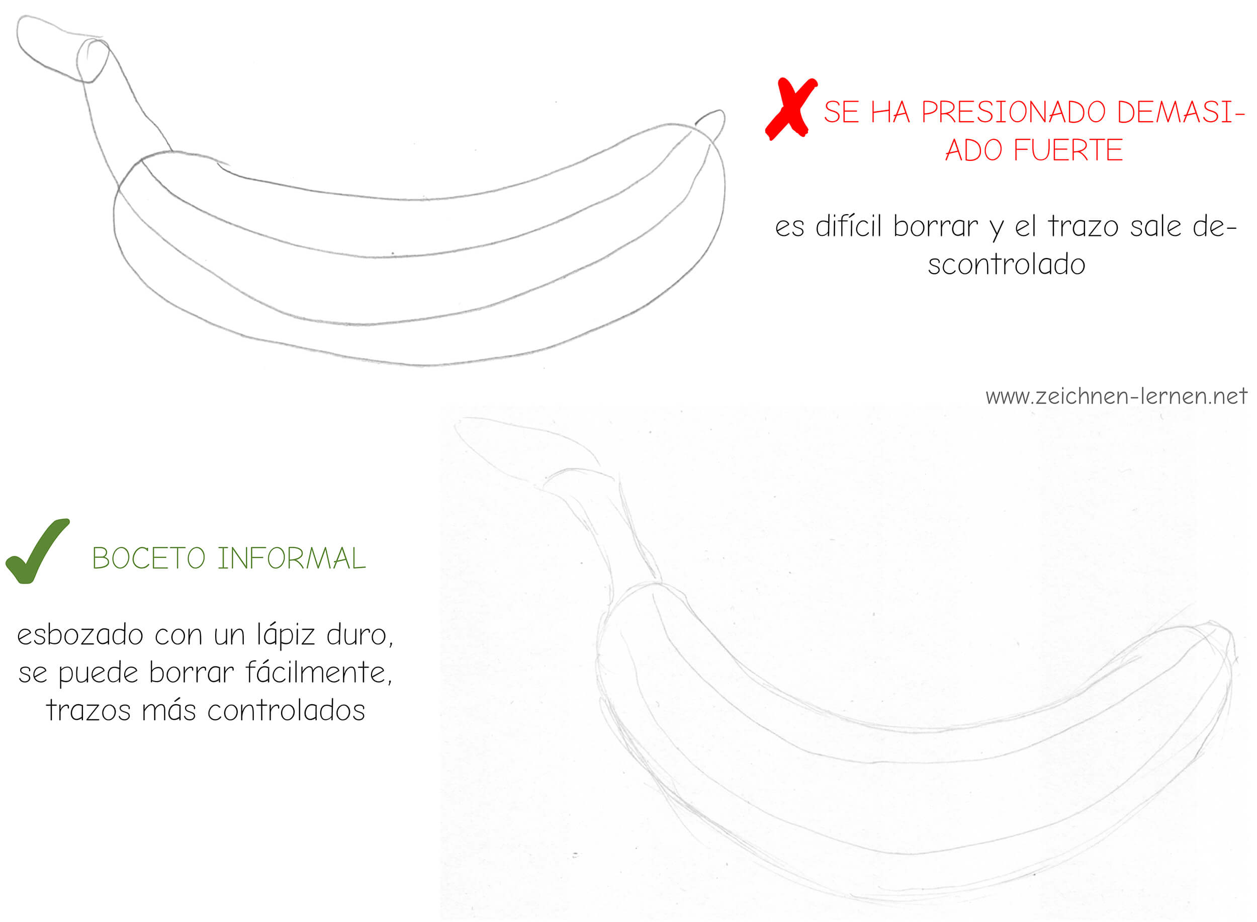 Contornos demasiado firmes frente a dibujo preliminar suelto con lápiz duro