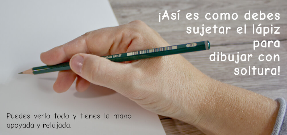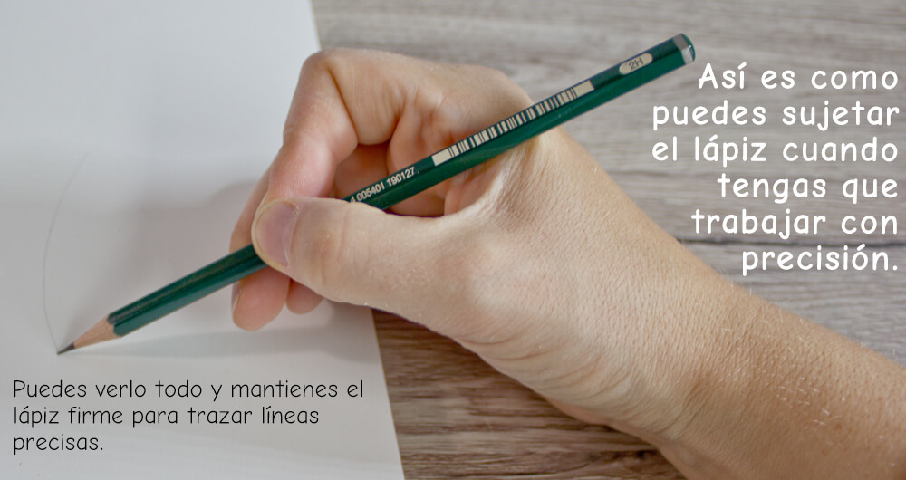 Lo ideal es que el lápiz se sujete con naturalidad en la mano y que esta abarque toda la longitud del lápiz. El pulgar y el índice no deben estar a la misma altura en el lápiz, sino que el pulgar debe situarse un poco más arriba. Sin embargo, para lograr una mayor precisión al dibujar, el pulgar y el índice pueden acercarse ligeramente.