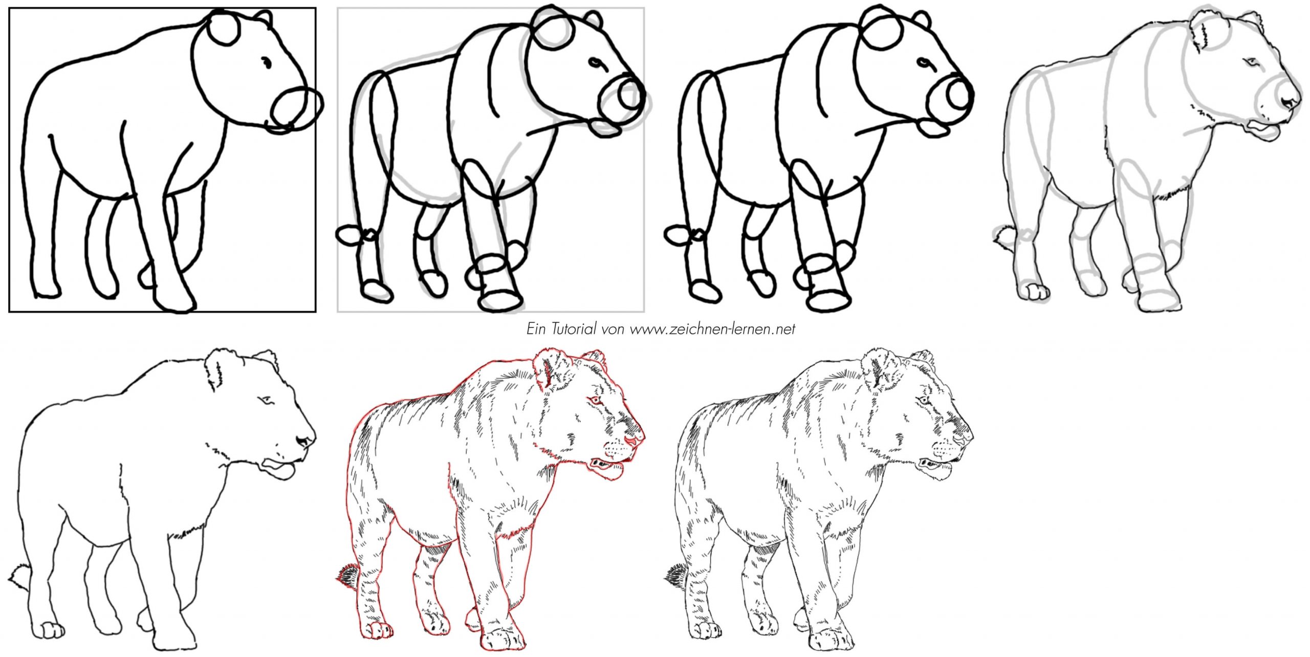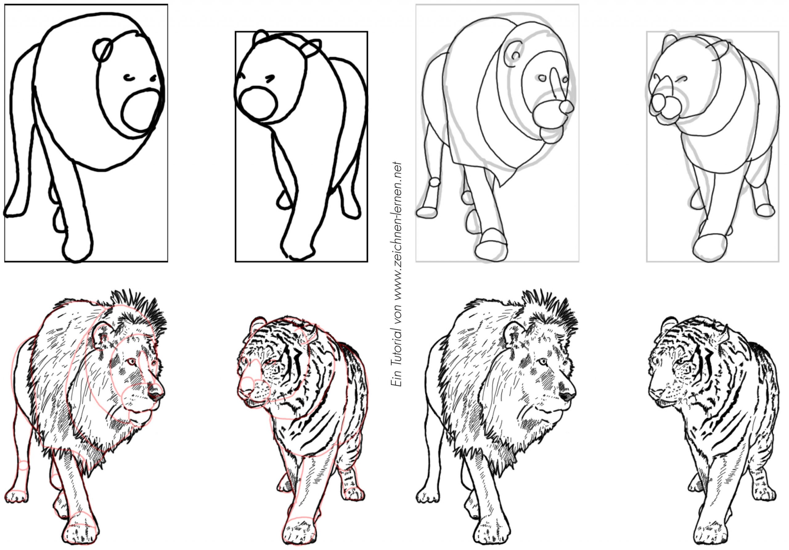Löwen und Tiger zeichnen